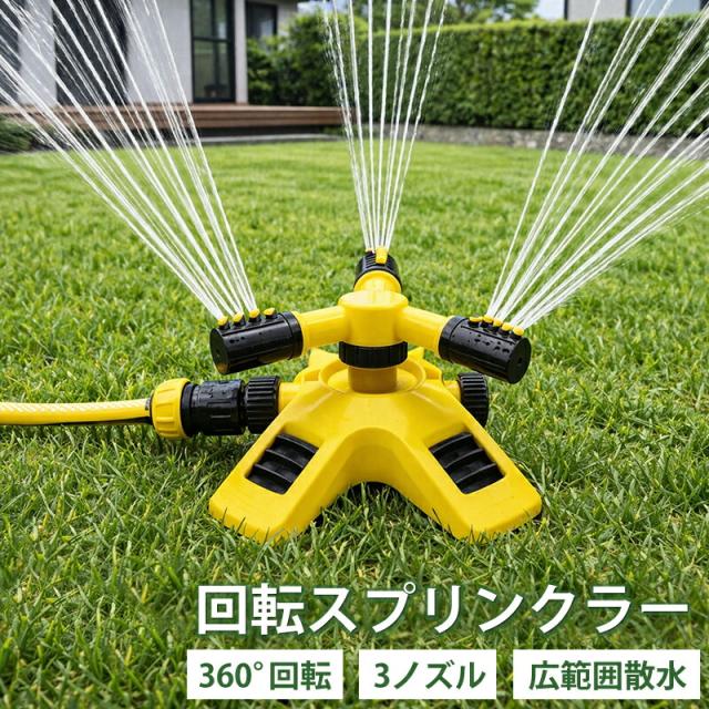 回転式スプリンクラー 360度散水 3ノズル 自動散水 散水器 芝生 ガーデニング 家庭菜園 水やり 庭 広範囲 散水機 ホース接続 連結可能 簡単設置 節水 園芸用品 水撒き 花壇 ベランダ 農業用 軽量 コンパクト ガーデン 散水ノズル 庭園 散水装置 送料無料