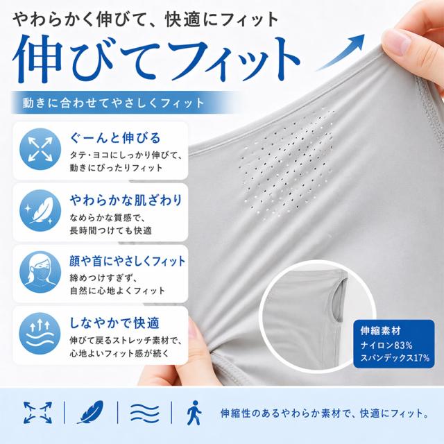 日差しの強い季節に、1枚持っておくと便利な冷感フェイスカバーです。