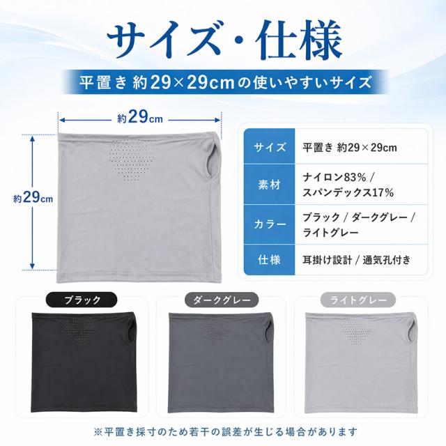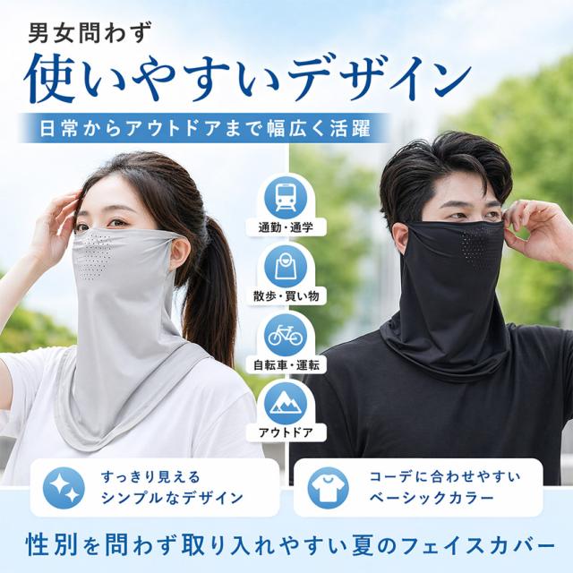 シンプルなデザインで、男性・女性どちらにも使いやすいフェイスカバーです。