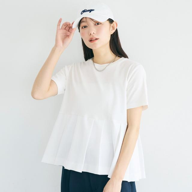 異素材切替で華やぐタックフレアTシャツ