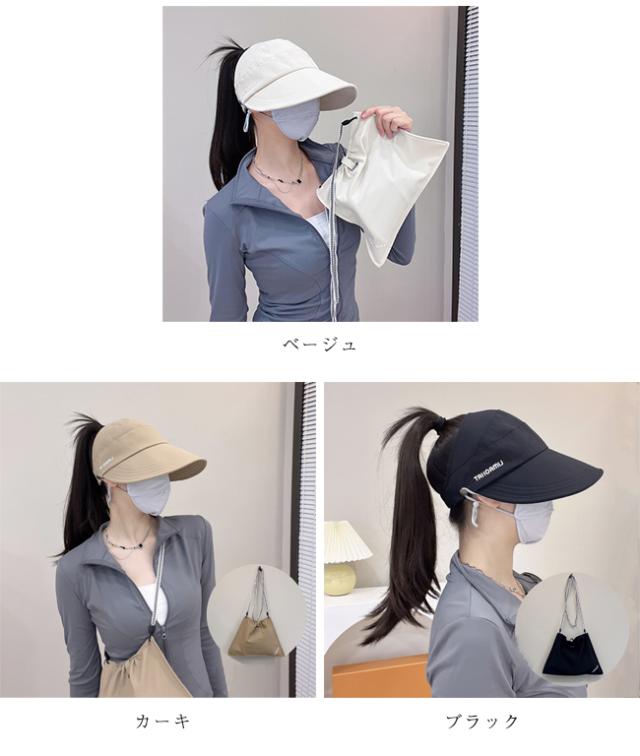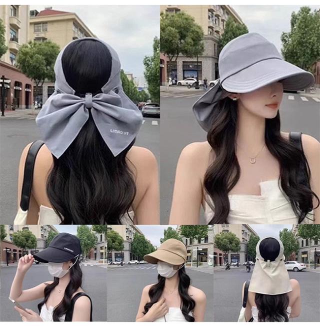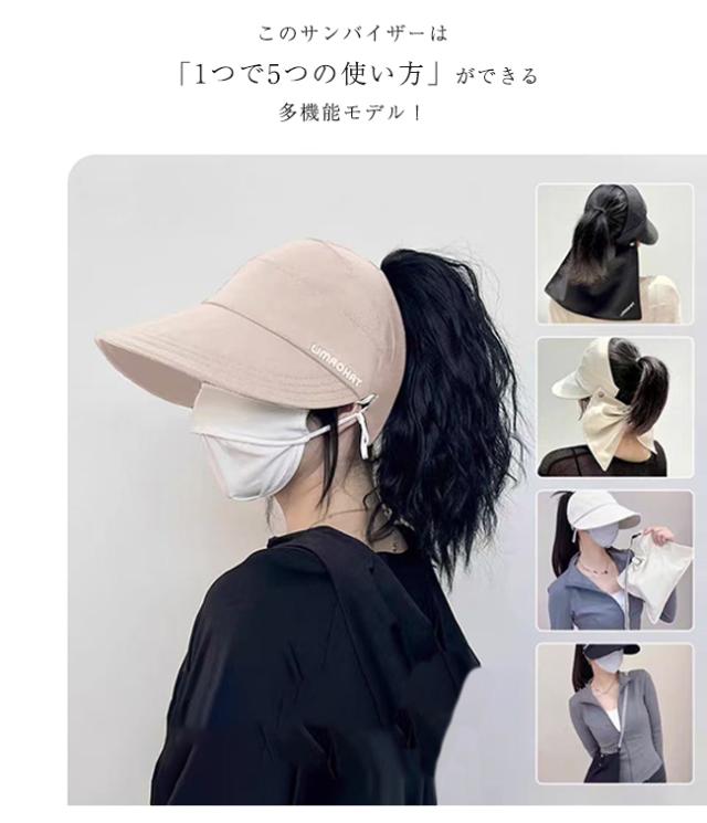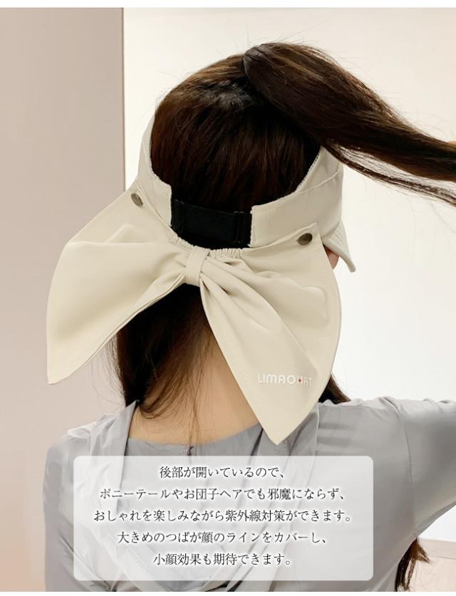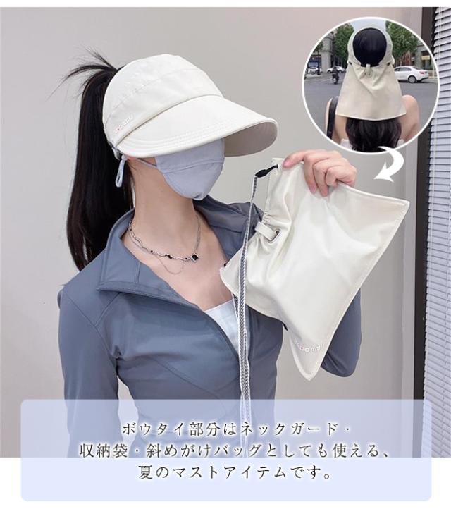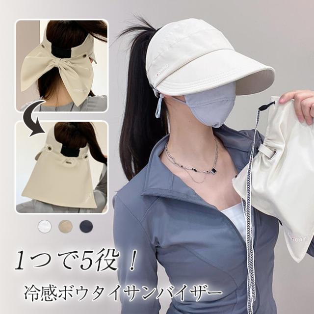 帽子 5WAY 多機能 サンバイザー レディース 夏用 冷感 ヘアアップ 大きいつば 日焼け止め ネックガード付き 折りたたみ 軽量 通気性 ボウタイ 可愛い