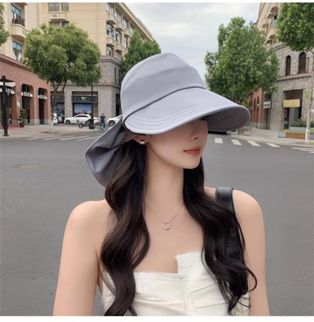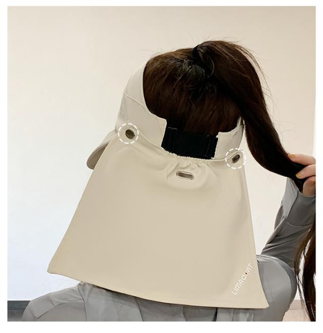 後部が開いているので、ポニーテールやお団子ヘアでも邪魔にならず、おしゃれを楽しみながら紫外線対策ができます。大きめのつばが顔のラインをカバーし、小顔効果も期待できます。