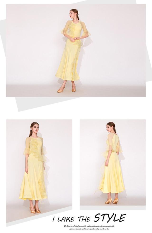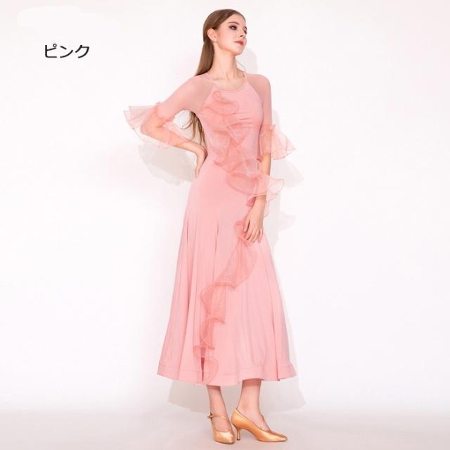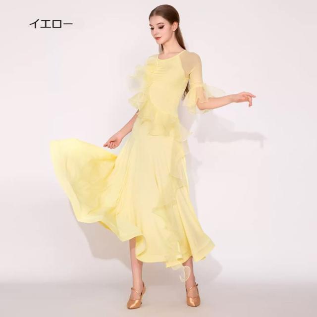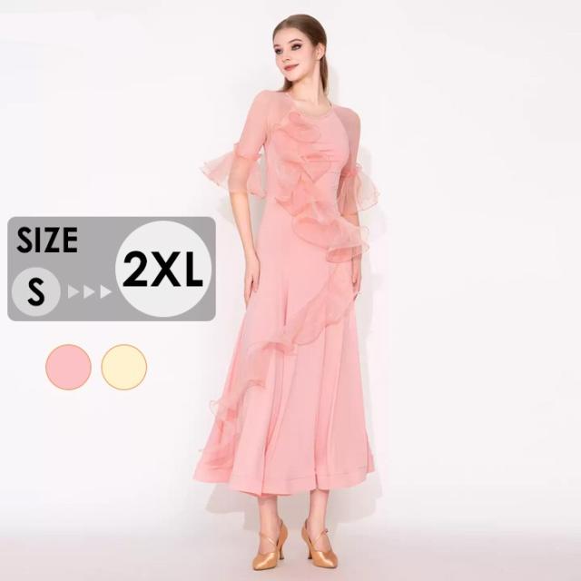 社交ダンスドレス 社交ダンス衣装 ワンピース 競技着 練習着 モダンドレス ステージ衣装 ダンス衣装 スタンダードドレス ワルツダンス ダンスウェア ダンス練習着 衣装 ラテン モダン 練習着 競技会 パーティー 発表会 演奏会 大きい裾 競技会 パーティー ピンク イエロー S M L 2XL mj044zbzbld