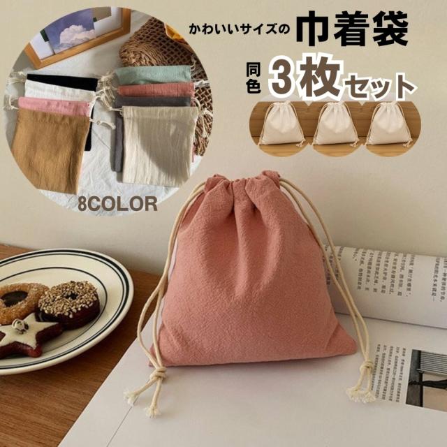 巾着袋 ポーチ 3枚セット 小物入れ コスメポーチ トラベルポーチ サニタリーポーチ 巾着 しわ加工 無地 ホワイト ブラック