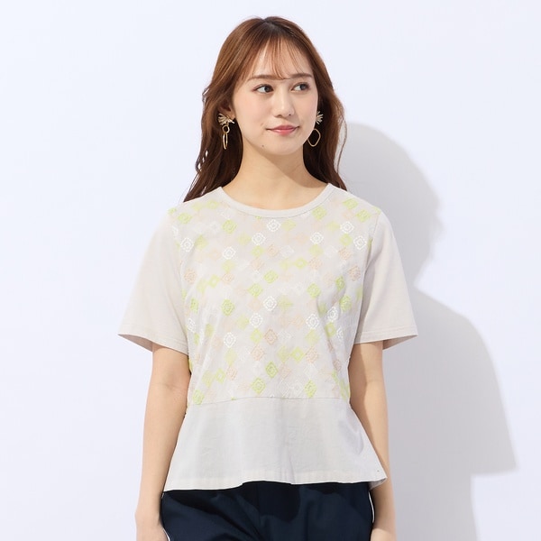 【NEW】リリアンビューティ エクラ(Liliane Burty ECLAT)/【洗える】ローンワッシャー刺繍Tシャツ