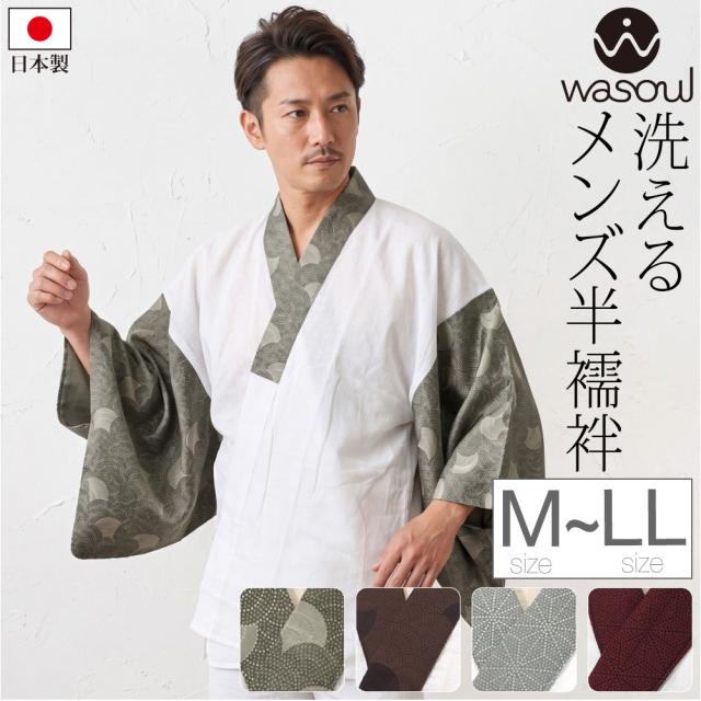 半襦袢 うそつき 襦袢 袷用 日本製 WASOUL 男物 洗える 半襦袢 ジャガード織半衿付き 半衿付き 肌襦袢 襦袢袖 おしゃれ 大人 メンズ 男性 10025031