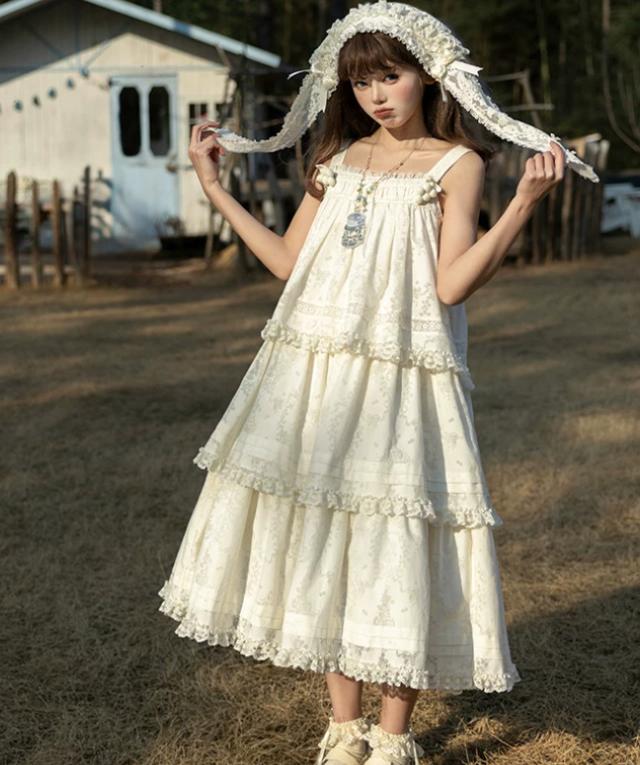 クラシカル,ロリータ,ジャンパースカート,ロング丈,上品,レトロ,古風,ナチュラル,森ガール,スウィート,かわいい,夏コーデ,レディース,ピクニック,お茶会