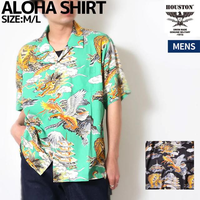 ヒューストン HOUSTON ALOHA SHIRT(三つ巴) メンズ カジュアル 半袖 シャツ プリント アメカジ ヴィンテージ 軽撥水 ミリタリー アロハシャツ 41265