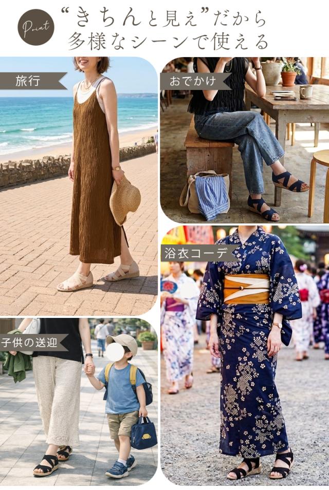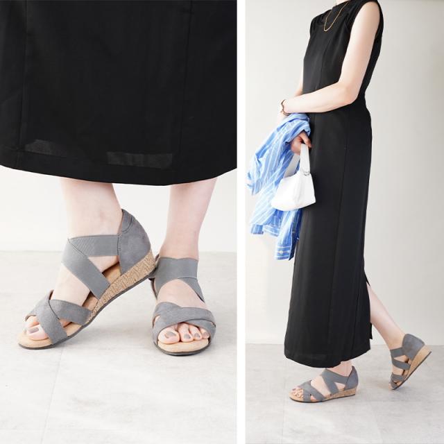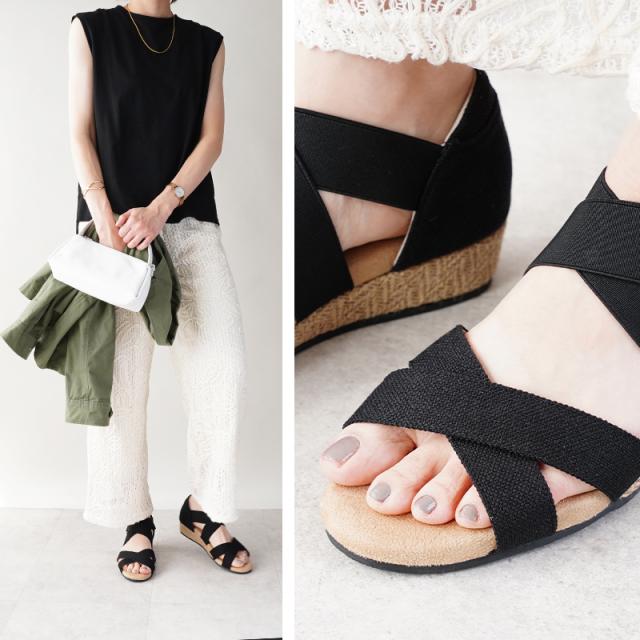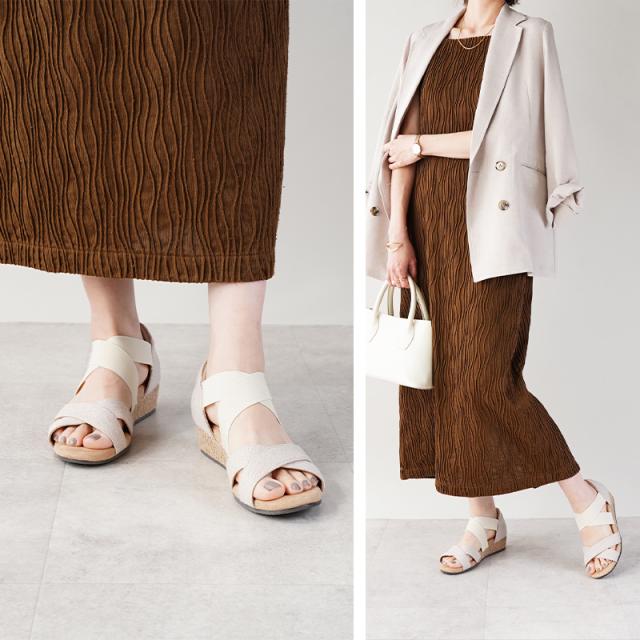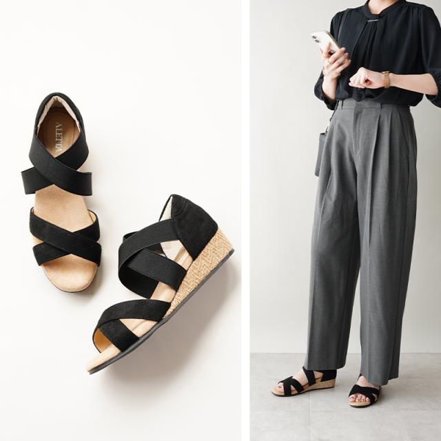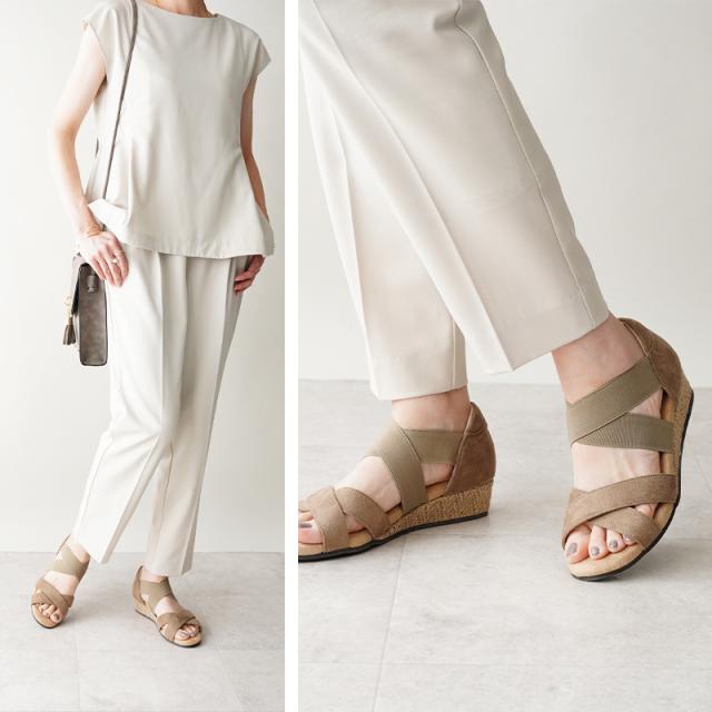 ・約3.5cmのウエッジソールは楽ちんでとても歩きやすく、ヒール靴より接地面積が広いので安定感があります。