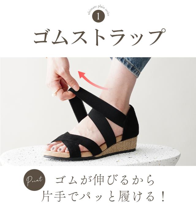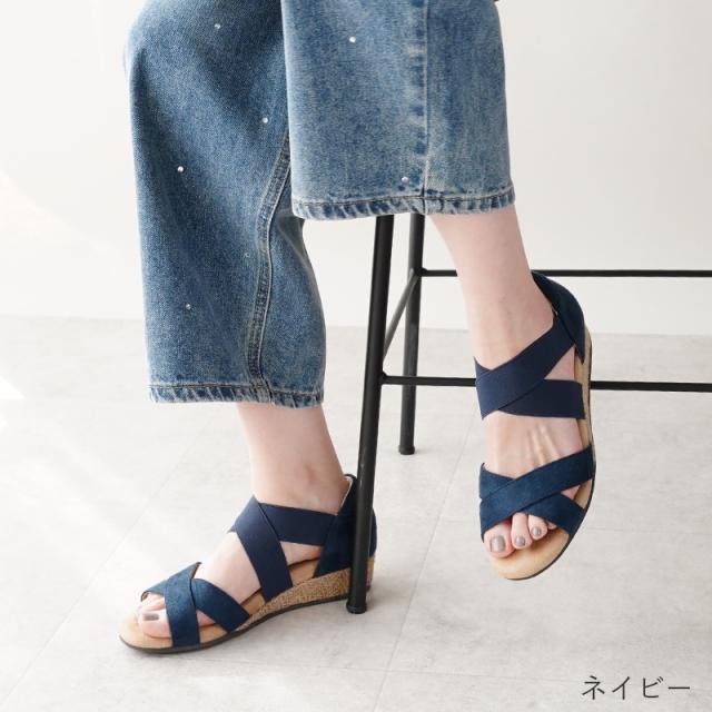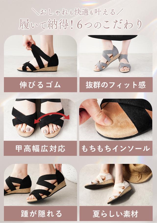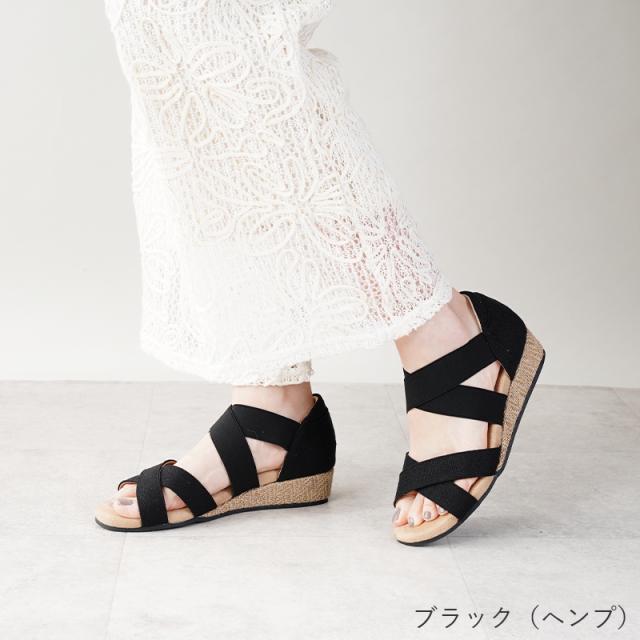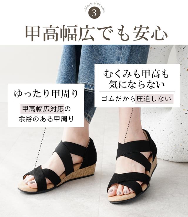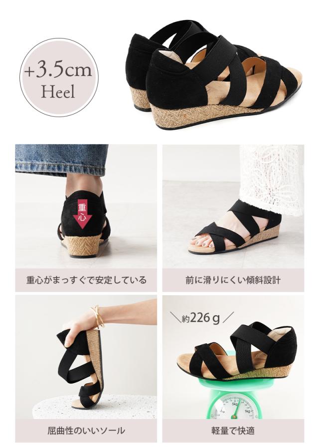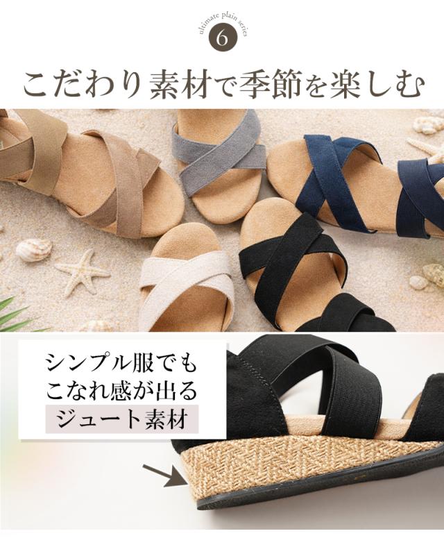 サンダル レディース 疲れない 歩きやすい もちもちクッション ゴムサンダル 3.5cmヒール ウェッジサンダル レディース ジュート ブラック ネイビー S-LL 旅行 シンプル おしゃれ 安定感 痛くない 定番 人気 美脚 軽量 春夏