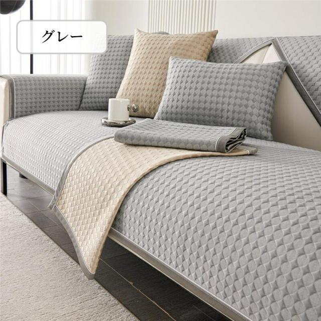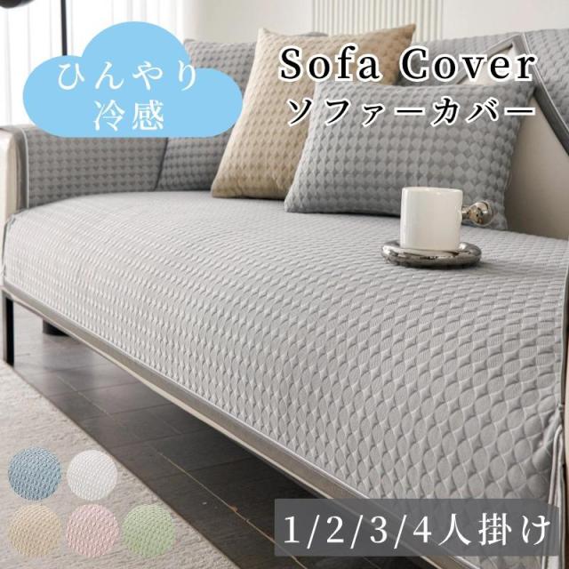 ソファーカバー 接触冷感 ひんやり 涼しい セパレート かけるだけ 幾何模様入り 冷感 快適 長方形 正方形 肘掛け 肘なし 丈夫 滑り止め 汚れ防止 キズ防止