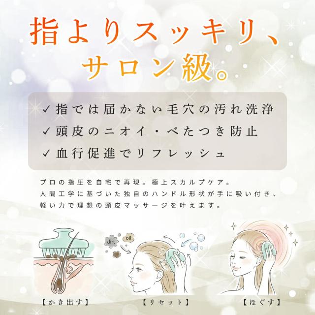 頭皮ケアで気になる「におい」や「べたつき」、フケやかゆみを抑え、健やかな地肌へと導くスカルプブラシです。