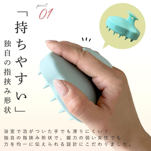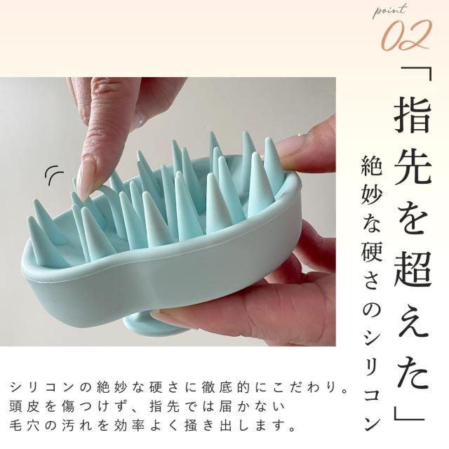 指先では届かない毛穴の奥の汚れまでスッキリとかき出すシリコン製のシャンプーブラシ。