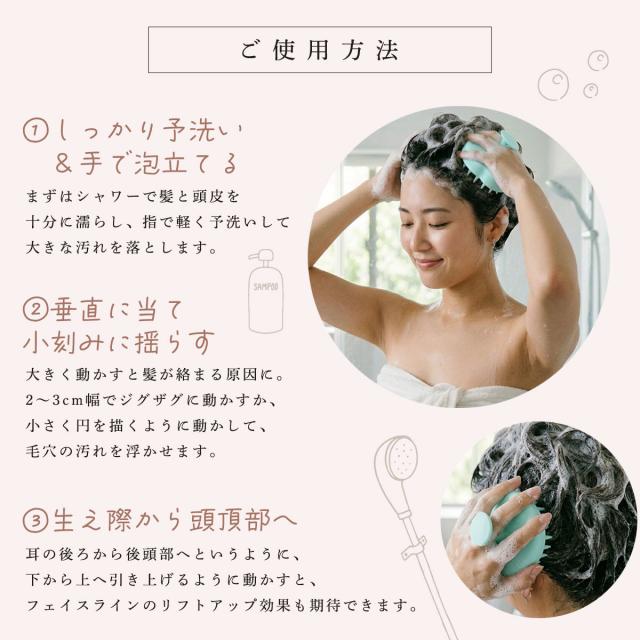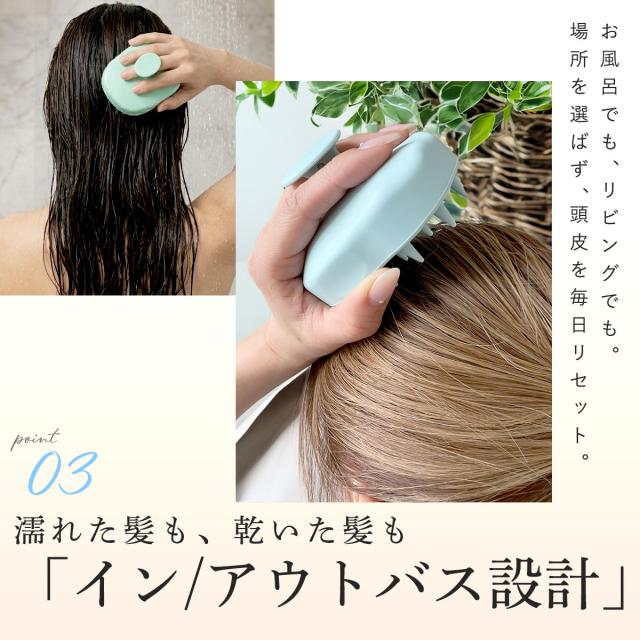 洗髪ブラシとしてインバスで使えるのはもちろん、アウトバスでの頭皮マッサージ器としても。