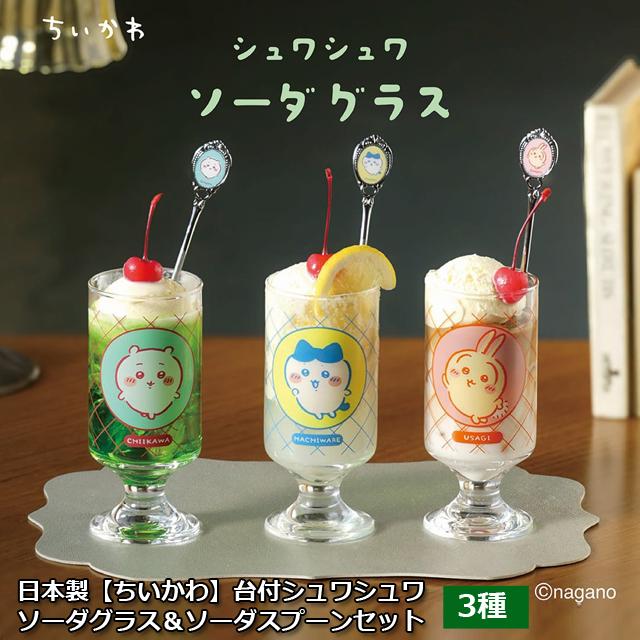日本製ちいかわ台付シュワシュワソーダグラス&ソーダスプーンセット ちいかわオフィシャル 正規品 ちいかわキャラクター公式 ちいかわ食器 ちいかわグラス 夏グラス レトロ食器