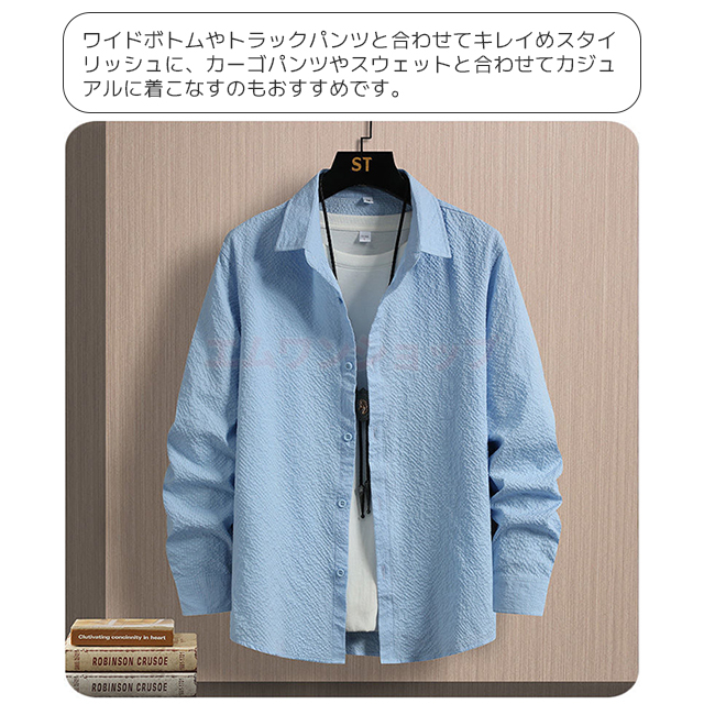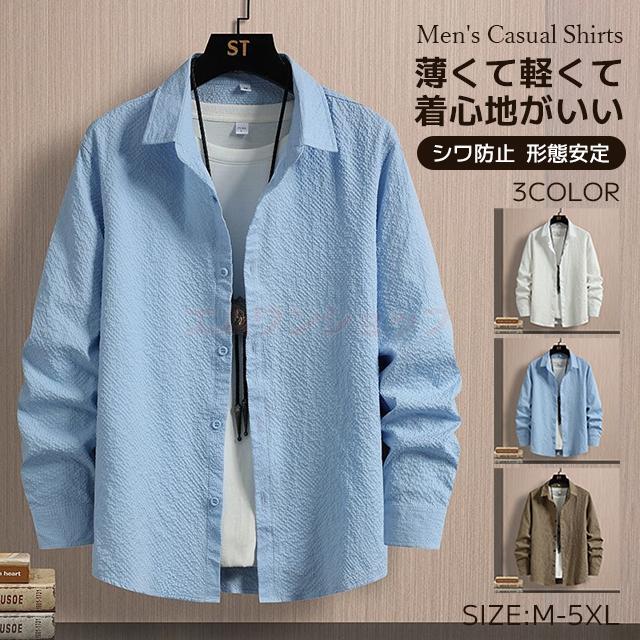 最安値挑戦 春新作 送料無料 新作 シャツ メンズ 長袖シャツ 春秋 カジュアルシャツ シアサッカー トップス シンプル 無地 薄手 通勤 通学 紳士服 ビジネス オフィス 仕事 シワ防止 形態安定 秋物 秋服 春物 春服 30代 40代 50代