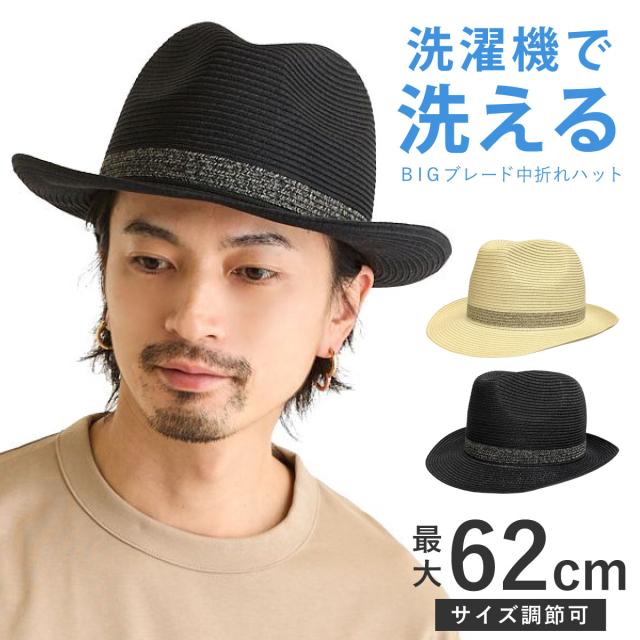 BIG 中折れハット 洗濯機で洗える メンズ 帽子 つば6cm 涼しい 熱中症対策 ウォッシャブル 形状記憶 62cm ブレードハット 通気性 軽い hat-1561 大きい 夏用 帽子 レディース 春夏 UV 日よけ 洗濯 男女兼用 カッコいい 父の日 贈り物 ギフト