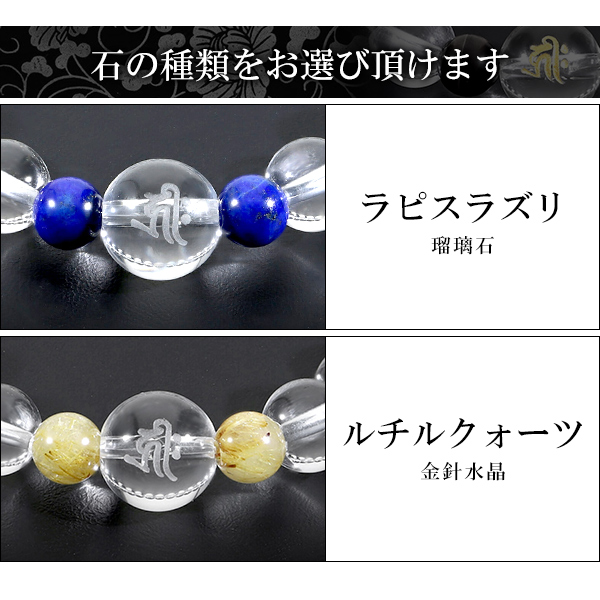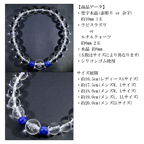 梵字 十二支 守護 ブレスレット 水晶 ルチルクォーツ ラピスラズリ 10mm S〜LL サイズ