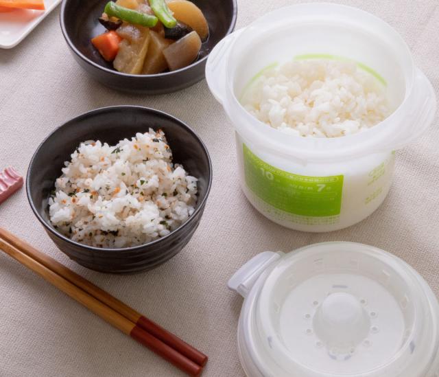 少量でも電子レンジでほかほかご飯が手軽に楽しめるご飯メーカーです。1合炊き用なので、夜食やお弁当作りで少しだけ炊きたいときに便利です。白米だけでなく、雑穀米や玄米、炊き込みご飯など幅広くお使いいただけます。