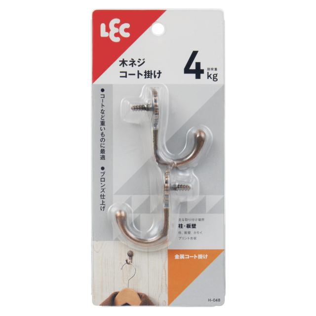 金属コート掛け ( フック 木ネジ コート掛け 洋服掛け 耐荷重4kg 2個入り ブロンズ 重い物 アンティーク調 ネジ ねじ カモイ 収納 鴨居 柱 板壁 かもい 壁掛け コートハンガー )