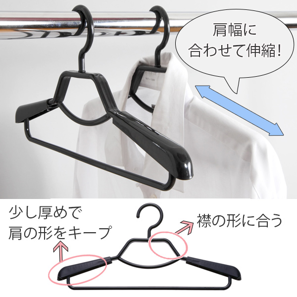 洗濯ハンガー 形態安定 シャツ用ハンガー 2本組 ( 衣類 収納 衣類収納 ハンガー シャツ シャツ用 シャツハンガー 黒 プラスチック メンズ 紳士服 男性 レディース 女性 40 40cm 40センチ 52 52cm バー付き )