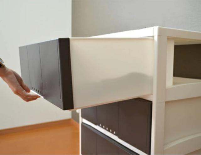 引き出しは軽い力でスムーズに開閉することができます。ストッパー付きで、引き出しを引きすぎたときの落下を防止してくれるので安心です。最大限引き出しを引けるので、奥に入れたものの出し入れも簡単です。