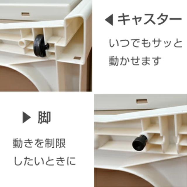 | 材質 | 天板・外枠・引出し・キャスター・脚:ポリプロピレン 前パネル:スチロール樹脂 補強板:アルミ |