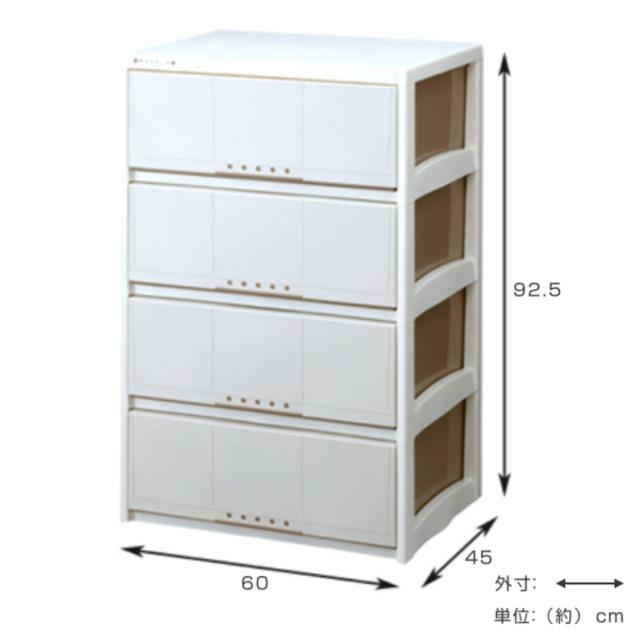 | サイズ | 約 幅60×奥行45×高さ92.5(cm) 引出内寸:約 幅53×奥行41×高さ19cm(×4段) |