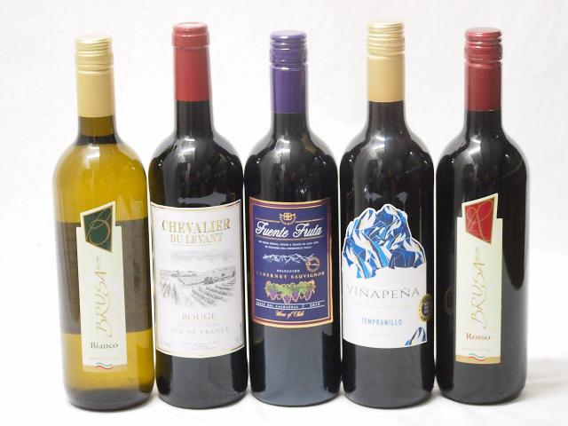 セレクション 赤ワイン 白ワイン 5本セット ( イタリアワイン 白1本 イタリアワイン 赤1本 フランスワイン 赤1本 チリワイン 赤1本 スペインワイン 赤1本)750ml×5本