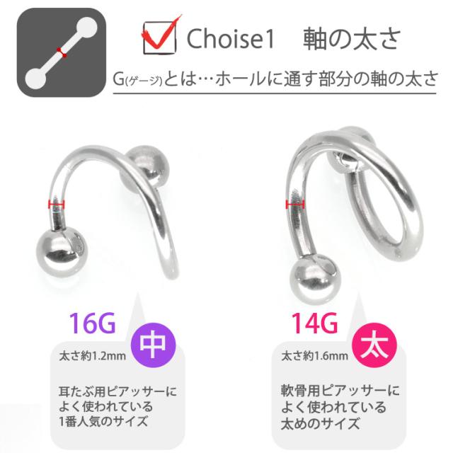 [カスタム] ボディピアス スパイラルバーベル 16G 14G へそピアス