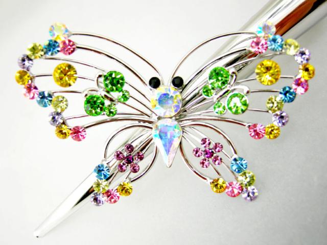 髪留め 蝶 くちばしピン コンコルド バタフライ ちょうちょ ピンク パステルカラー キラキラ カラフル クリスタル 浴衣 盆踊り 夏祭り 華やか ゴージャス