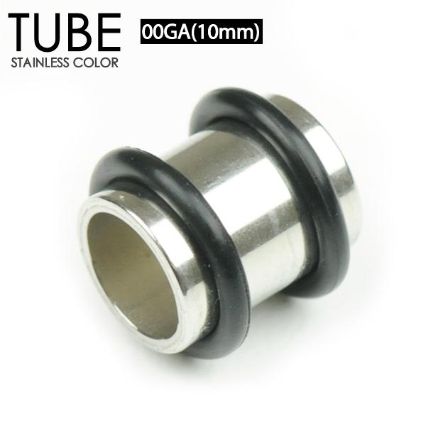【メール便対応】ボディピアス チューブ 00G(10mm) アイレット サージカルステンレス316L 両側をゴムで固定 定番ボディーピアス イヤーロブ ホールトゥピアス 00ゲージ(10ミリ)┃