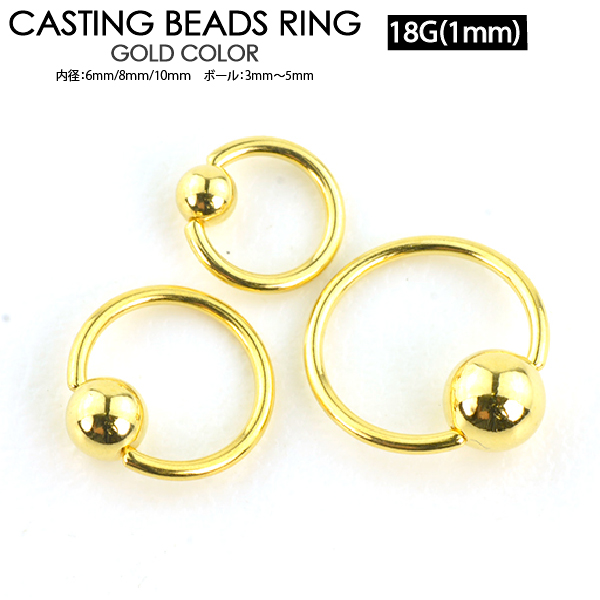 【メール便対応】キャプティブビーズリング ゴールド18G(1mm) GOLD カラーコーティング キャスティング サージカルステンレス ボディーピアス BCR CBR リングピアス イヤーロブ┃