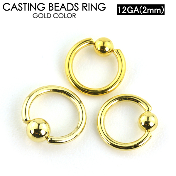 【メール便対応】キャプティブビーズリング ゴールド12G(2mm) GOLD カラーコーティング キャスティング サージカルステンレス ボディーピアス BCR CBR リングピアス イヤーロブ 12ゲージ┃