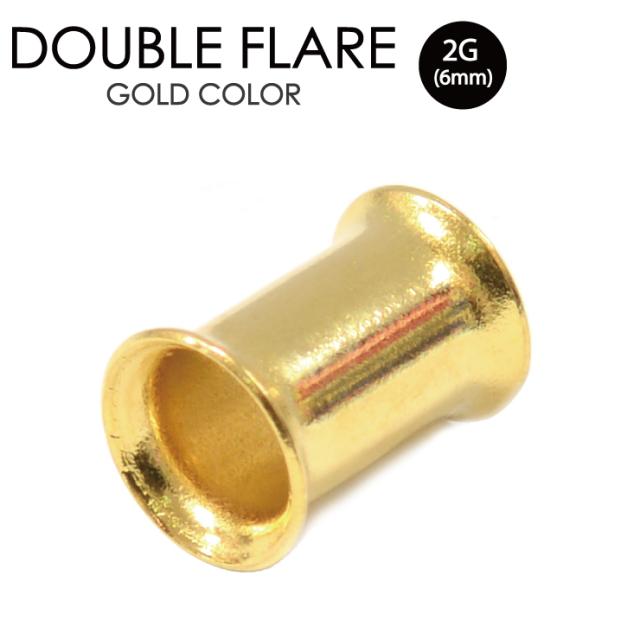 【メール便対応】ダブルフレア アイレット ゴールド 2G(6mm) GOLD カラーコーティング加工 サージカルステンレス スタイリッシュ シンプル 定番ボディーピアス ホールトゥピアス 2ゲージ ┃