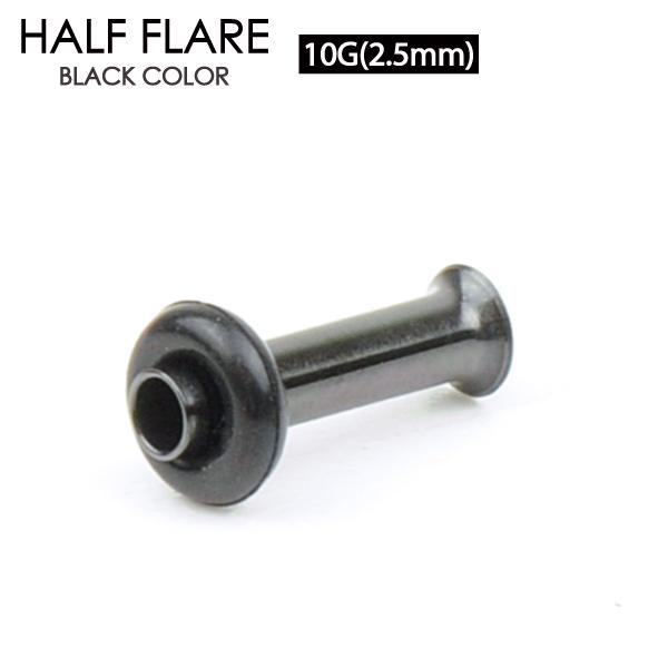 【メール便対応】ボディピアス シングルフレア ブラック 10G(2.5mm) サージカルステンレス316L製(医療用)ハーフフレア BLACK イヤーロブ ホールトゥピアスに最適 ボディピアスの片側がフレアスカート形状 片側がゴムで固定 10ゲージ(2.5ミリ)┃