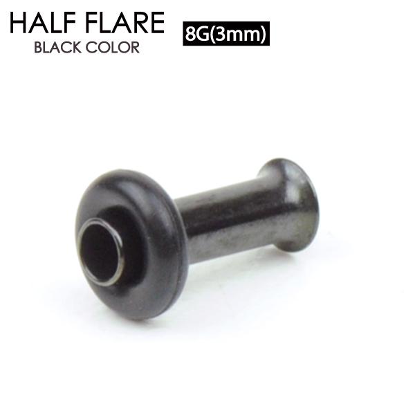 【メール便対応】ボディピアス シングルフレア ブラック 8G(3mm) サージカルステンレス316L製(医療用)ハーフフレア BLACK イヤーロブ ホールトゥピアスに最適 ボディピアスの片側がフレアスカート形状 片側がゴムで固定 8ゲージ(3ミリ)┃
