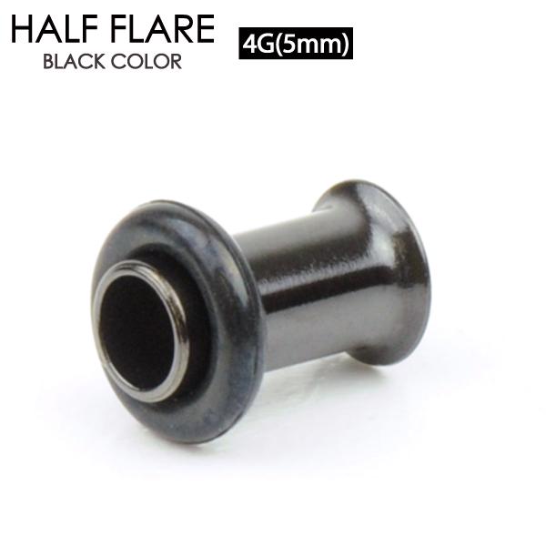 【メール便対応】ボディピアス シングルフレア ブラック 4G(5mm) サージカルステンレス316L製(医療用)ハーフフレア BLACK イヤーロブ ホールトゥピアスに最適 ボディピアスの片側がフレアスカート形状 片側がゴムで固定 4ゲージ(5ミリ)┃