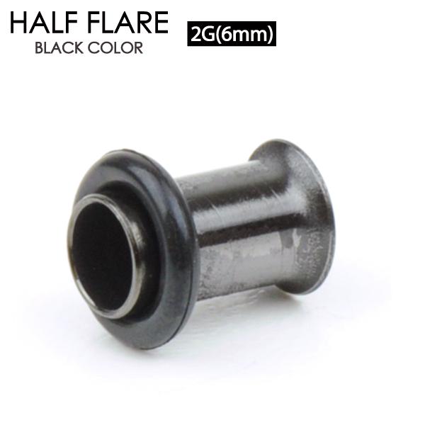 【メール便対応】ボディピアス シングルフレア ブラック 2G(6mm) サージカルステンレス316L製(医療用)ハーフフレア BLACK イヤーロブ ホールトゥピアスに最適 ボディピアスの片側がフレアスカート形状 片側がゴムで固定 2ゲージ(6ミリ)┃