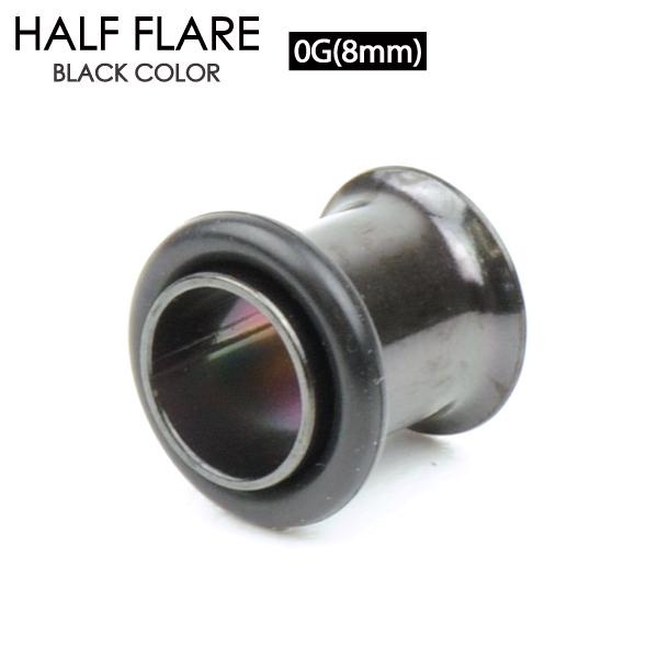 【メール便対応】ボディピアス シングルフレア ブラック 0G(8mm) サージカルステンレス316L製(医療用)ハーフフレア BLACK イヤーロブ ホールトゥピアスに最適 ボディピアスの片側がフレアスカート形状 片側がゴムで固定 0ゲージ(8ミリ)┃