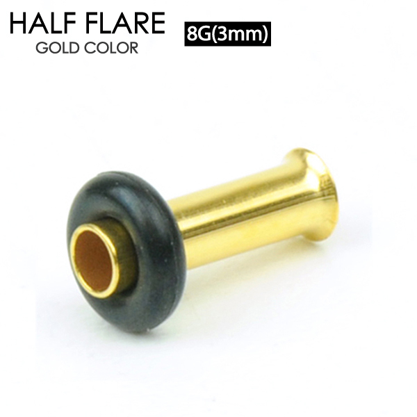 【メール便対応】シングルフレア ゴールド 8G(3mm) ハーフフレア GOLD カラー サージカルステンレス316L 定番ボディーピアス ホールトゥピアス 8ゲージ(3ミリ)┃