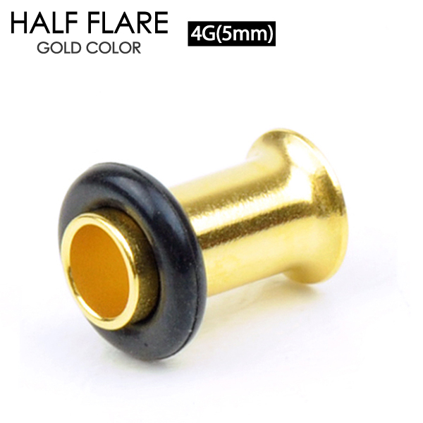 【メール便対応】シングルフレア ゴールド 4G(5mm) ハーフフレア GOLD カラー サージカルステンレス316L 定番ボディーピアス ホールトゥピアス 4ゲージ(5ミリ)┃