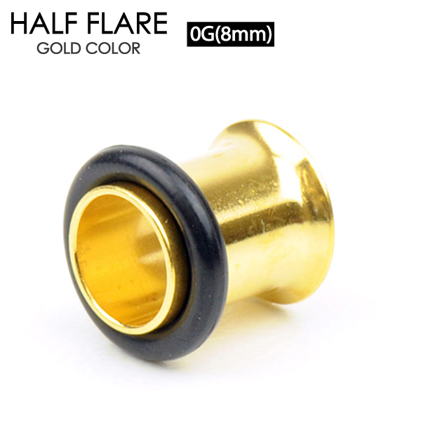 【メール便対応】シングルフレア ゴールド 0G(8mm) ハーフフレア GOLD カラー サージカルステンレス316L 定番ボディーピアス ホールトゥピアス 0ゲージ(8ミリ)┃