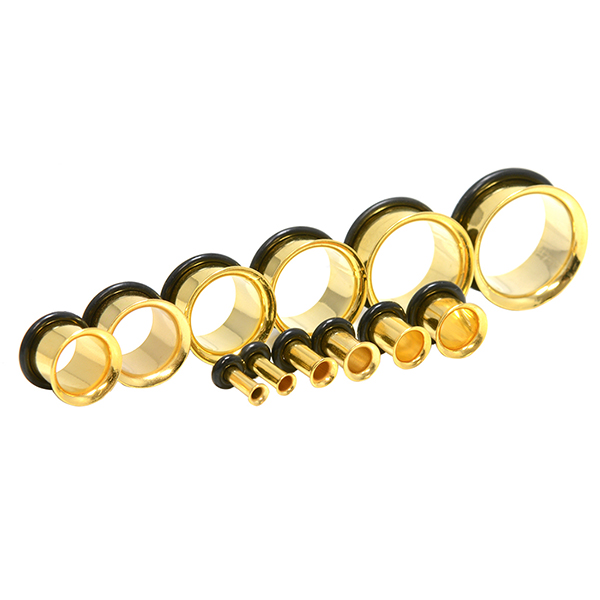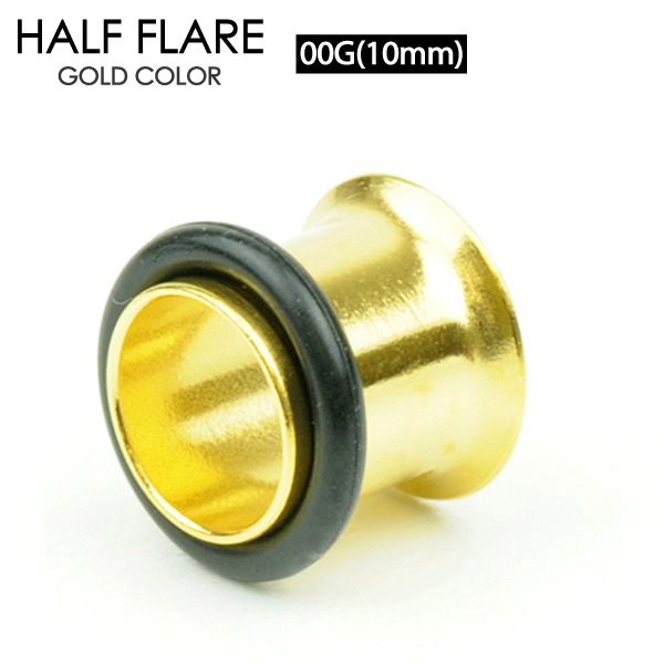 【メール便対応】シングルフレア ゴールド 00G(10mm) ハーフフレア GOLD カラー サージカルステンレス316L 定番ボディーピアス ホールトゥピアス 00ゲージ(10ミリ)┃