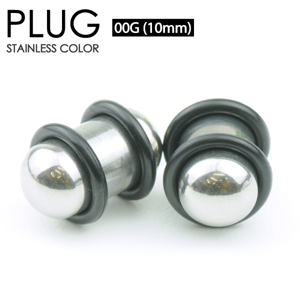 【メール便対応】プラグ 00G (10mm) サージカルステンレス316L(医療用) ボディピアス 両側をゴムで固定 定番ボディーピアス イヤーロブ PLUG 00ゲージ(10ミリ)┃