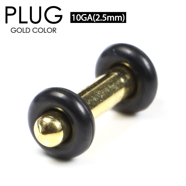 【メール便対応】ボディピアス プラグ ゴールド 10G(2.5mm) PLUG GOLD サージカルステンレス316L 定番ボディーピアス イヤーロブ カラー 10ゲージ(2.5ミリ)┃