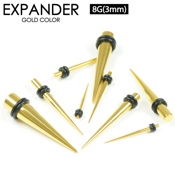 【メール便対応】拡張器 ゴールド 8ゲージ(3ミリ) エクステンション サージカルステンレス GOLD カラー ボディピアスホールアップ イヤーロブ 8G (3mm) ┃