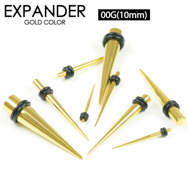 【メール便対応】拡張器 ゴールド 00ゲージ(10ミリ) エクステンション サージカルステンレス GOLD カラー ボディピアスホールアップ イヤーロブ 00G(10mm) ┃