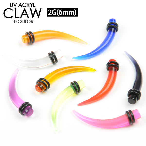 【メール便対応】UVアクリル クロウ 2ゲージ(6ミリ) エキスパンダー 拡張器 クロー カラー デザイン ボディーピアス ボディピアス イヤーロブ 2G(6mm)┃