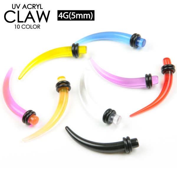 【メール便対応】UVアクリル クロウ 4ゲージ(5ミリ) エキスパンダー 拡張器 クロー カラー デザイン ボディーピアス ボディピアス イヤーロブ 4G (5mm) ┃